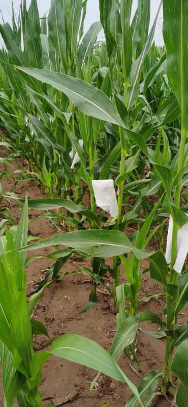 病虫害防治:通过以施化肥、植物生长调节剂、农药等相混合的方式,起到防虫治病,抗衰老防早衰的作用。除了前期两次针对玉米红蜘蛛、玉米螟、锈病等广发性病虫害的统防统治,授粉结实期还要结合不同组合、不同田间情况,及时进行有针对性的病虫害防治。一般情况下喷施农药要错过授粉高峰期,避免药液与母本花丝和父本雄穗直接接触造成伤害,从而影响授粉结实。